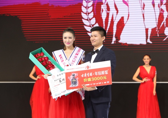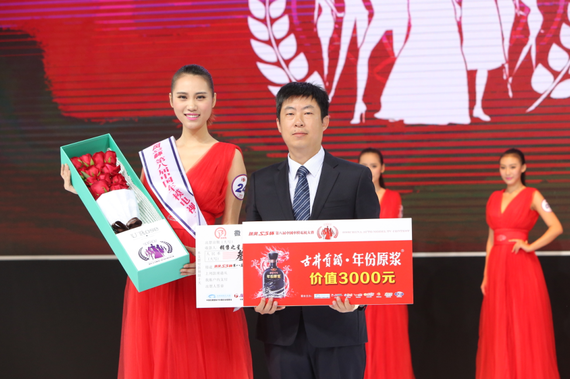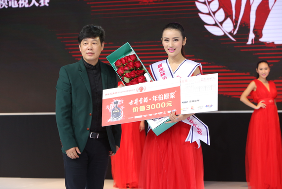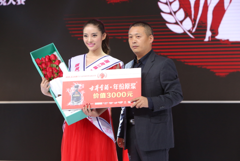 古井贡酒合肥营销公司总经理杨永波先生为最佳上镜奖得主刘芳芳颁奖