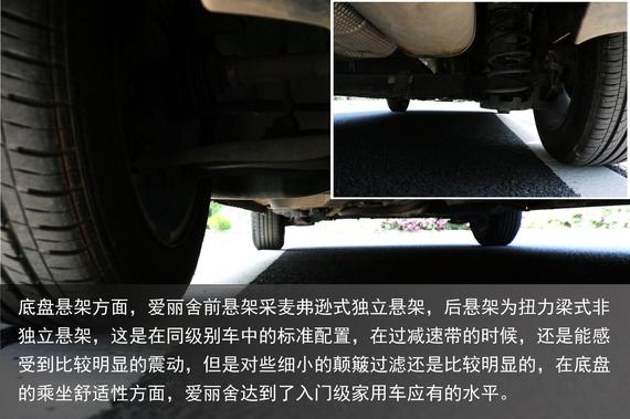 底盘悬架方面,全新爱丽舍前悬架采麦弗逊式独立悬架,后悬架为扭力梁式非独立悬架,这是在同级别车中的标准配置,在过减速带的时候,还是能感受到比较明显的震动,但是对些细小的颠簸过滤还是比较明显的,在底盘的乘坐舒适性方面,全新爱丽舍达到了入门级家用车应有的水平。