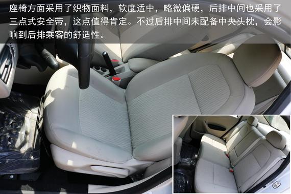 座椅方面采用了织物面料,软度适中,略微偏硬,后排中间也采用了三点式安全带,这点值得肯定。不过后排中间未配备中央头枕,会影响到后排乘客的舒适性。